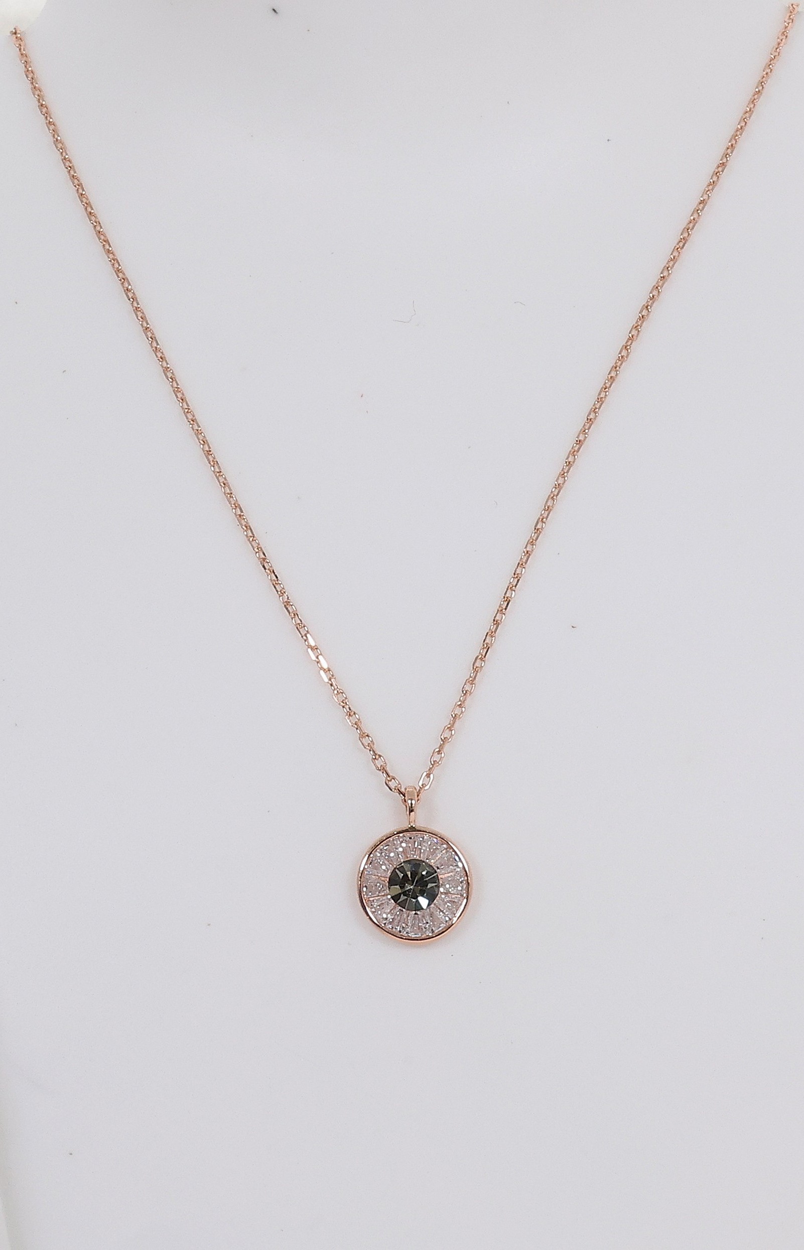 This 925 sterling silver pendant, finished in radiant rose gold plating, showcases a stunning circular design with a dark central CZ stone surrounded by a halo of shimmering white CZ diamonds. The fine chain complements its elegant simplicity, making it a perfect piece for both minimal chic and layered looks. Ideal for wholesalers seeking refined everyday jewelry, this pendant blends modern sophistication with timeless sparkle.