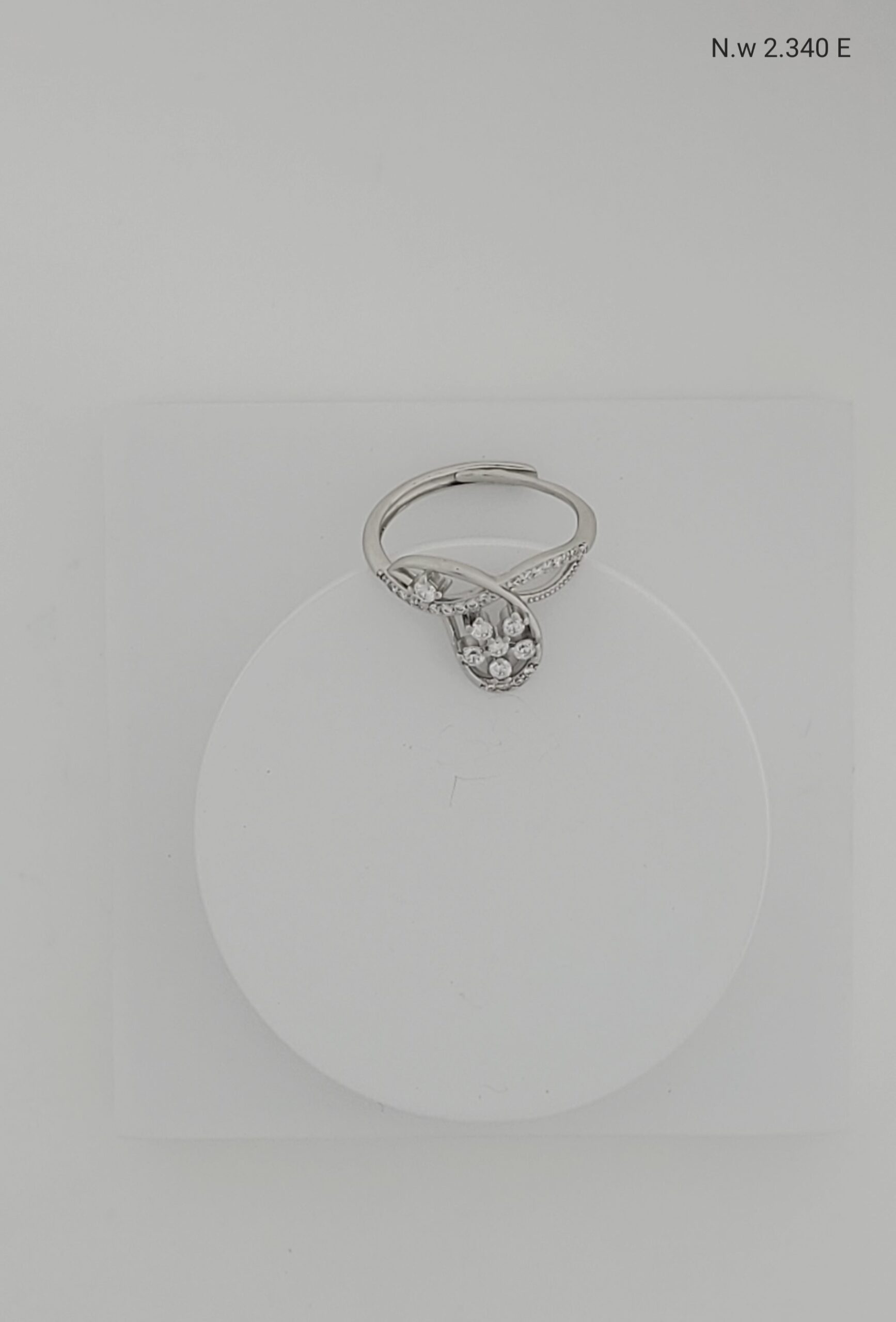 Elegant adjustable ring crafted in 925 sterling silver with a twisted design and CZ diamonds. Lightweight, modern and perfect for wholesale and resale.